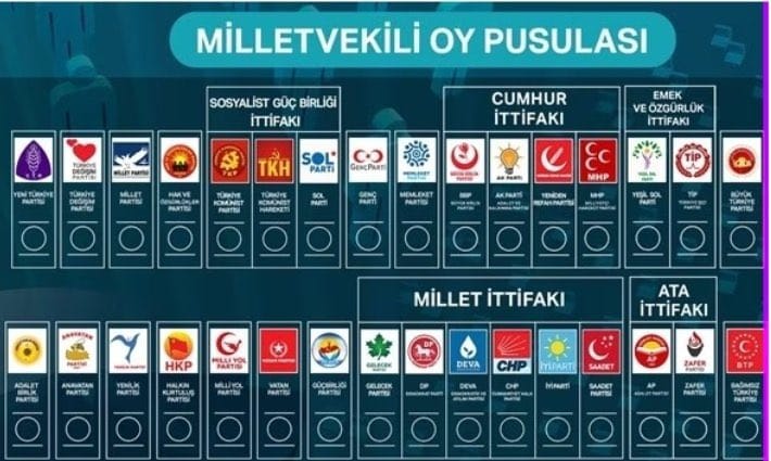 Türkiye'de yapılacak genel seçimlerde kullanılacak oy pusulasındaki partilerin ve ittifakların yeri çekilen kura ile belirlendi.