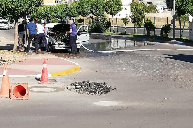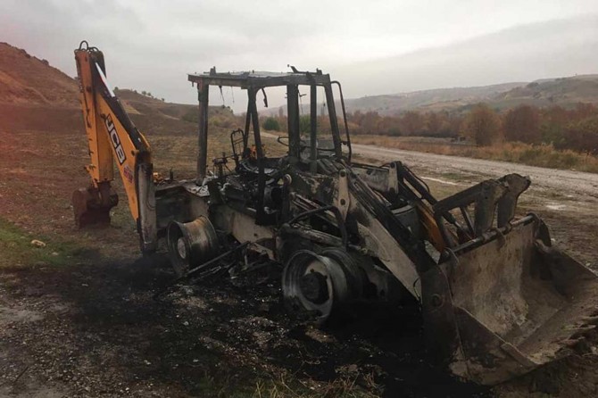 Kâhta'da alev alan iş makinası kullanılamaz hale geldi