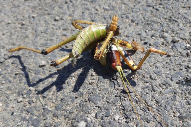Dev çekirge hareket halindeki araca çarparak telef oldu