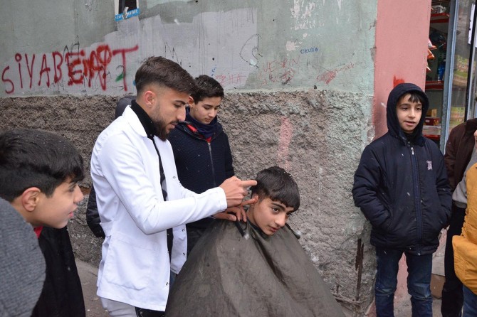 Daha önce engelli, yaşlı ve bakıma muhtaçları ücretsiz tıraş eden Diyarbakırlı Berber Resul Yılmaz, bugün de karnelerinde zayıf notları olan öğrencileri tıraş etti.