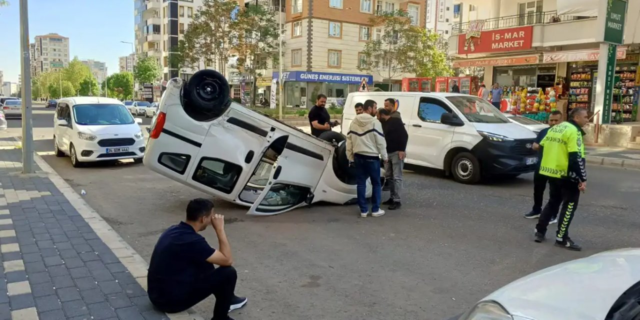 Diyarbakır Kayapınar Peyas Mahallesinde takla atan otomobilin sürücüsü yaralandı