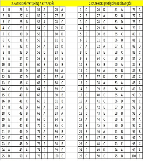 1.KATEGORİ (YETİŞKİN) CEVAP ANAHTARLARI