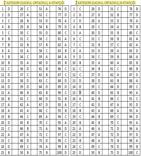 2. KATEGORİ (İLK/ORTA OKUL) CEVAP ANAHTARLARI