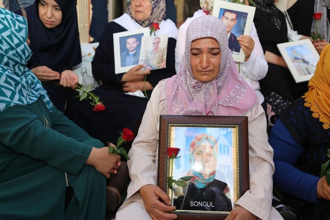Kızı Songül Akkuş için evlat nöbetini sürdüren acılı anne Fatma Akkuş, kızının bir tekstilde çalıştığını ve oradaki HDP'liler tarafından kandırılıp dağa gönderildiğini söyledi.