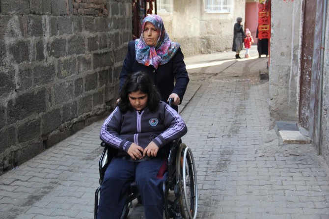 Dabanoğlu Mahallesi'nde yaşayan 12 yaşındaki Sabahat, yürümekte zorlandığı için eğitim gördüğü Ziya Gökalp Ortaokuluna okula gidip gelme noktasında büyük sıkıntı içerisinde.