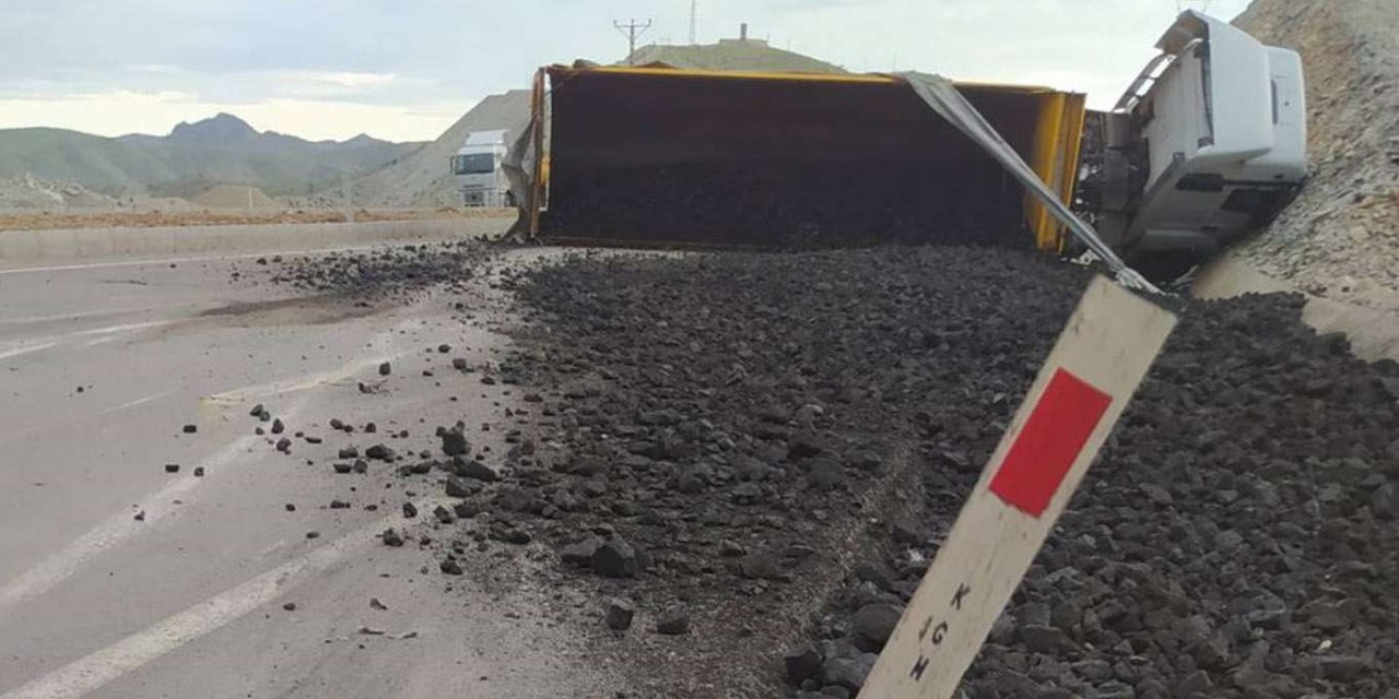 Kazada ölen yada yaralanan olmazken tıra yüklü kömür karayoluna savruldu.