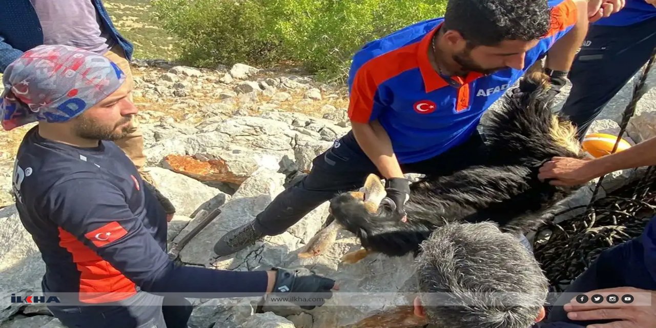 Diyarbakır Lice'de Kayalıkta mahsur kalan keçiyi AFAD ve itfaiye ekipleri kurtardı