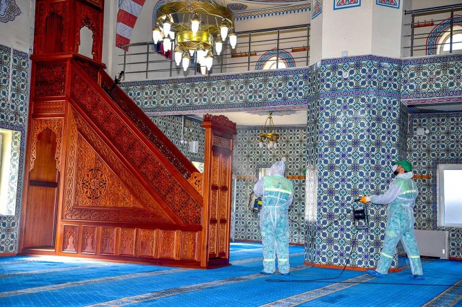 Corona virüs salgınına karşı vatandaşların toplu taşıma araçları ile duraklardan sonra ibadet alanlarında da gerekli tedbirler alınıyor.