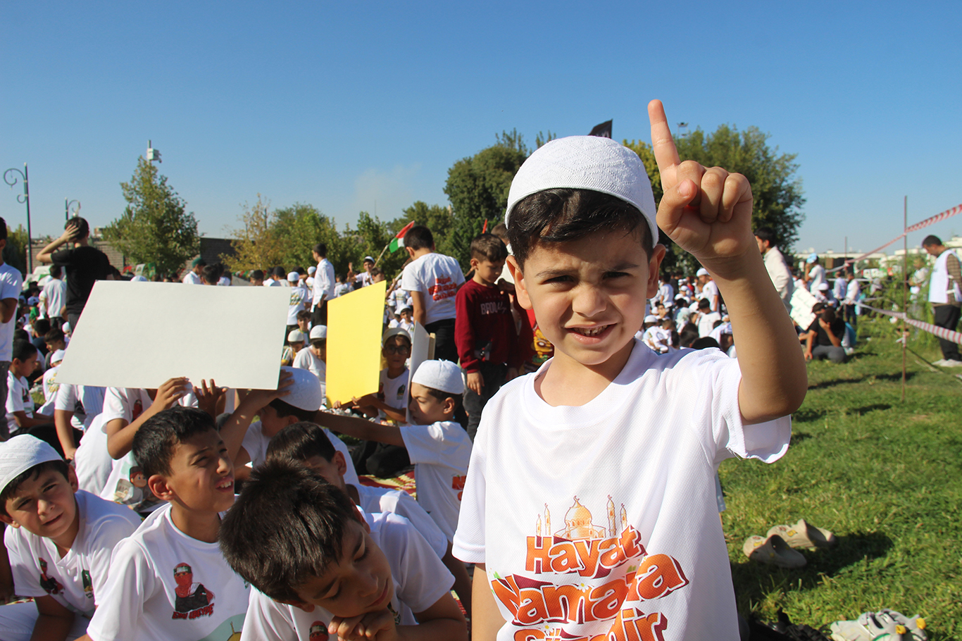 Bünyamin Aslan ise "Kendimi çok mutlu hissediyorum. Hocalarım bize Kur'an okumayı, namaz kılmayı ve Peygamberimizin hayatını öğrettiler. Bizler burada eğleniyorken Gazze'de çocuklar öldürülüyor. Rabbim işgalcileri kahretsin." dedi.