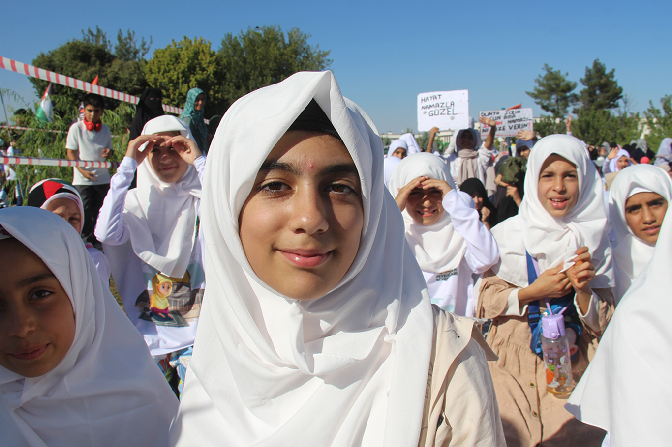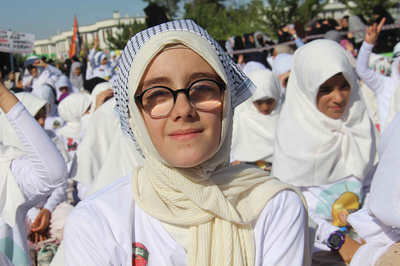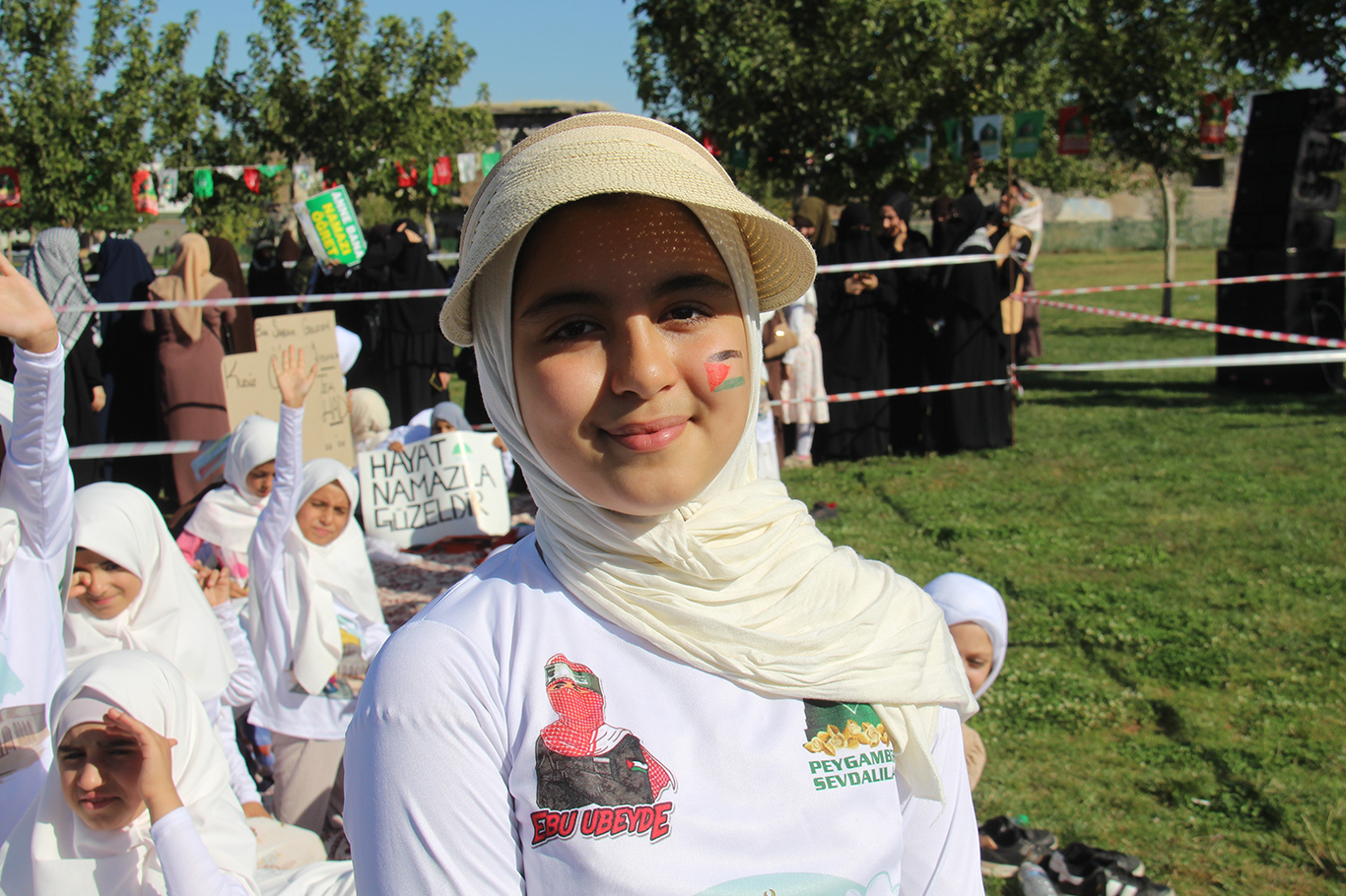Meryem Zeynep Bilmez ise "Namaz kılmak ve Filistin'deki çocuklara seslenmek için geldim. Onlara dua edeceğim. Bizim yaşadığımız sevinci Gazze'deki çocuklar da yaşasın isterim." ifadelerini kullandı.