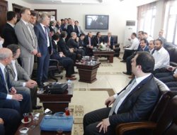 BATMAN - MÜSİAD Batman Şubesi'nin ev sahipliğinde düzenlenen toplantıya katılmak, bir dizi ziyaretlerde ve incelemelerde bulunmak üzere Batman'a gelen Müstakil Sanayici ve İşadamları Derneği (MÜSİAD) genel başkanı Nail Olpak ve yönetim kurulu üyeleri ile MÜSİAD şube başkanları, ilk olarak Batman Valisi Yılmaz Arslan'ı makamında ziyaret etti.