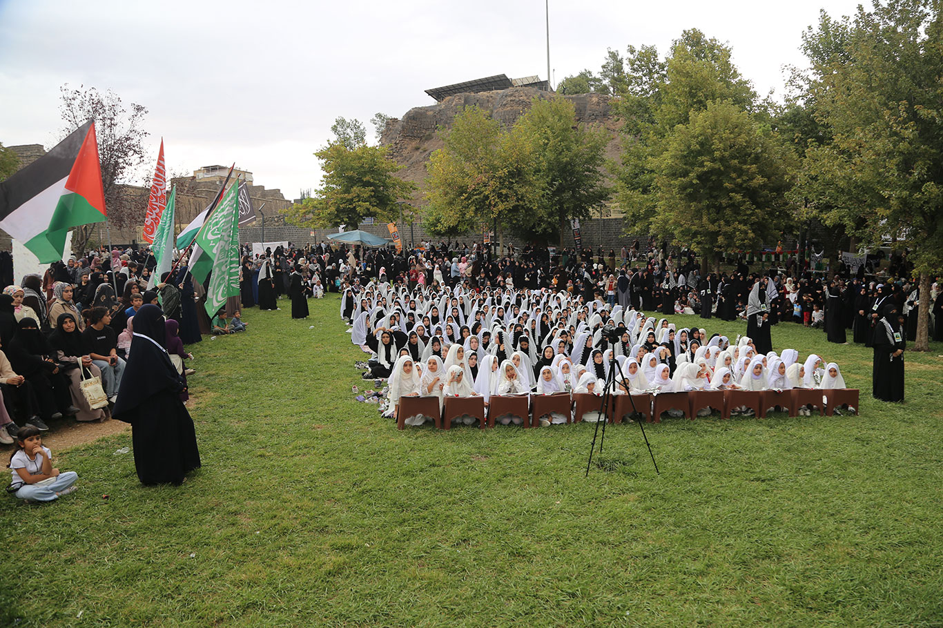 "Tüm dünya şimdi bunlarla boğuşuyor. O yüzden siz Allah'ın yeryüzündeki en şerefli kullarısınız. Çünkü sizi gören Allah'ı hatırlıyor. Ayrıca kafirlerin, hayasızların, edepsizlerin en büyük düşmanları sizlersiniz. Vallahi sizi görünce çıldırıyorlar. Onlara sizden daha büyük bir düşman yok. Onlar size tahammül edemiyorlar, edemezler. Ya azıcık vicdanları varsa gelip size katılacaklar ya da düşmanlıklarına devam edecekler. Çünkü onların atası iblisin görevi budur. Allah-u Teala, 'O şeytana uymayın. O şeytan ki sizlere daima terbiyesizliği, fuhşiyatı ve ahlaksızlığı emreder.' buyuruyor. Evet bu anlamda bizim rakibimiz şeytan ve dostlarıdır. O yüzden diyoruz ki İslam bugün en çok bayanlarımız tarafından temsil ediliyor."