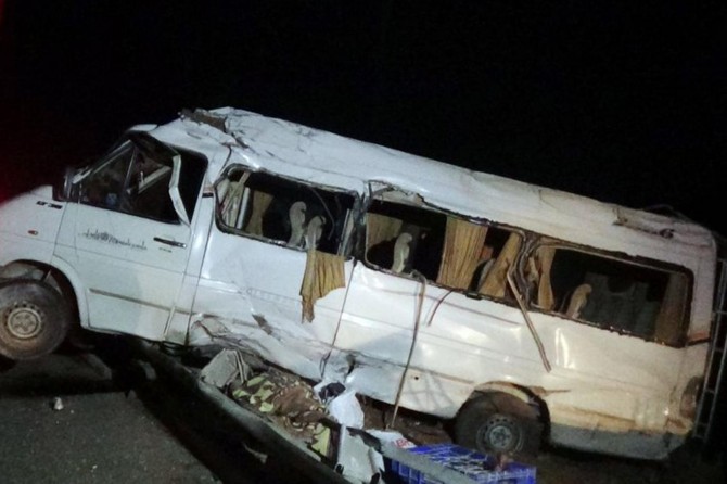 Tarım işçilerini taşıyan minibüs devrildi: 15 yaralı