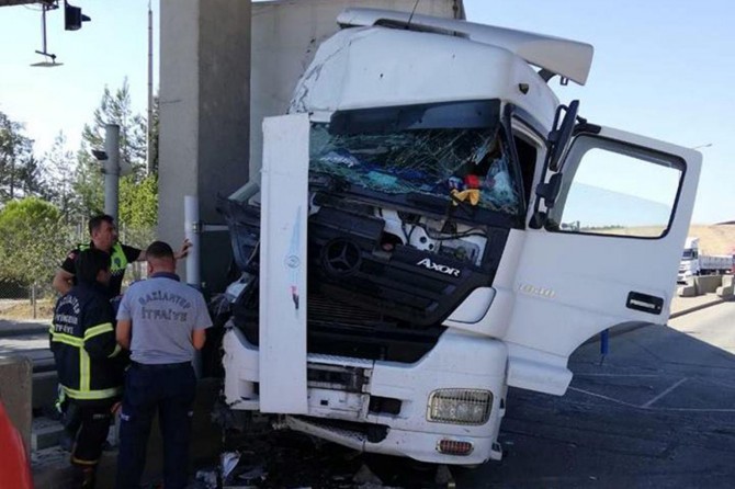 Gaziantep Nurdağı'nda TIR, beton direğe çaptı: 2 yaralı