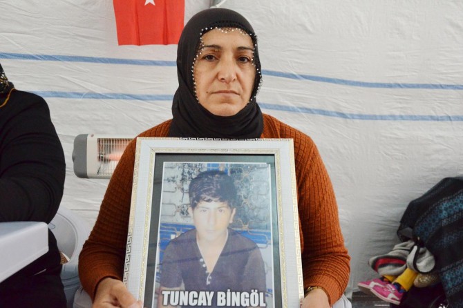 Bingöl, "Tuncay’ı HDP’ye yem ve kurban etmeyeceğim. Oğlumu onlara kurban olsun diye büyütmedim. 5 senedir onun hasretiyle yanıyorum. Diğer çocuklarım ağladığımı görüp üzülmesinler diye 5 senedir köşe bucakta ağlıyorum. Kimsenin bunu bize yaşatmasına hakkı yok. Evlatlarımızı kurşun sıksın diye büyütmedik. Tuncay karıncayı incitemeyen bir çocuktu." ifadelerini kullandı.