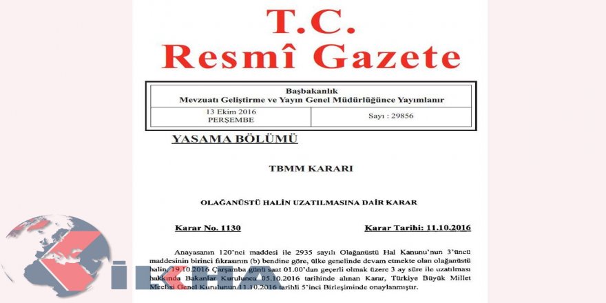 OHAL’in uzatılmasına dair karar Resmi Gazete’de