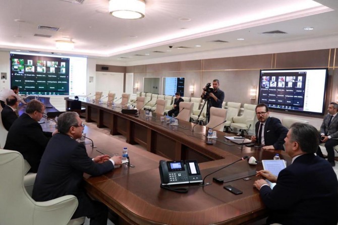 81 ilin sağlık müdürüyle telekonferans üzerinden toplantı yaptıklarını belirten Sağlık Bakanı Fahrettin Koca, "Riskleri, mücadele yöntemini değerlendirdik." ifadelerini kullandı.