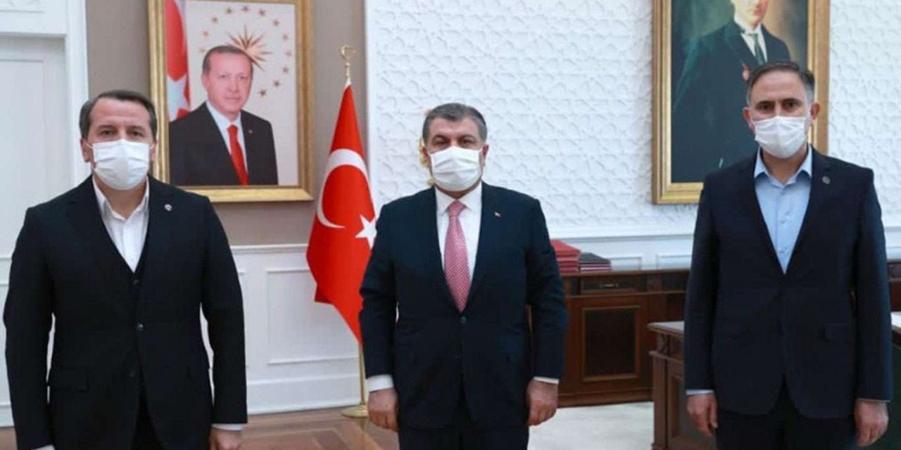 Memur-Sen Genel Başkanı Ali Yalçın ile Sağlık-Sen Genel Başkanı Semih Durmuş, Sağlık Bakanı Fahrettin Koca'yı makamında ziyaret etti.
