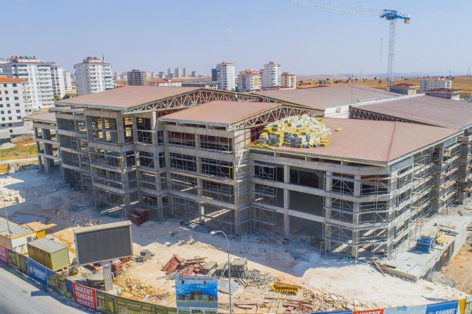 Gaziantep'in yeni mahallerinden olan Akkent Mahallesi'ne yaptırılan Şahinbey Kongre Merkezi'nin inşaat çalışmaları sürüyor.
