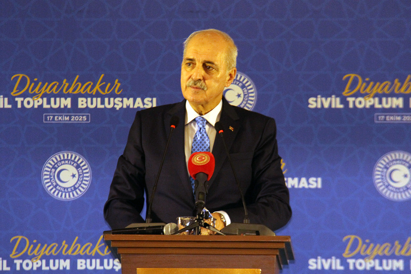 "Birlik ve beraberlik içinde olabilmemiz için hem tarihi müktesebatımız fevkalade güçlüdür hem de bugünün gerekleri bizi bir arada bulunmaya mecbur kılmaktadır. Bunu, inşallah gönüllü bir şekilde birlikteliğe, kardeşliğe çevirecek bu projeyi ortaya koyacağız. Bunun için bu süreç başlatıldı. Türkiye Büyük Millet Meclisi'ndeki 11 farklı siyasi parti bir araya gelerek, sürekli bir takdire şayan mesai harcıyor. 5 Ağustos'tan bu yana 15 farklı oturum düzenledik. Bu oturumlarda toplumun farklı kesimlerinden insanlar dinlendi. Bu dinlenenlerin arasında STK temsilcileri, kanaat önderleri oldu. 16 STK temsilcisi de Diyarbakır ilimizden, yani Diyarbakır merkezli kuruluşlarımız vasıtasıyla dinlediğimiz arkadaşlardı."