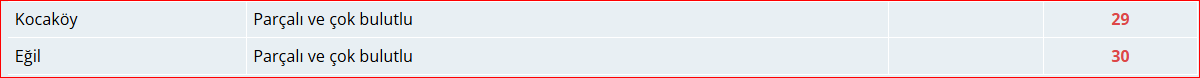 Parçalı ve çok bulutlu, yerel olmak üzere aralıklı sağanak ve gök gürültülü sağanak yağışlı geçeceği tahmin ediliyor. Yağışların öğle saatlerinden sonra kuzey kesimlerinde yer yer kuvvetli olması bekleniyor.
