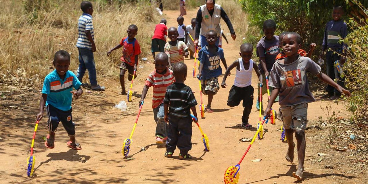 Vakfın Genel Sekreteri Nurullah Günaydın, çıngıraklı baston oyuncak dağıtılan erkek çocukları bir araya getirerek onlarla bir yarış düzenledi.