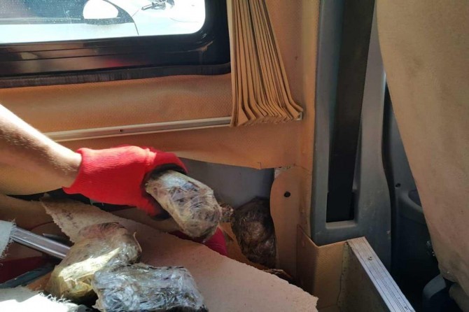 Van'da bir minibüste gizlenmiş 55 kilogram afyon sakızı ele geçirildi