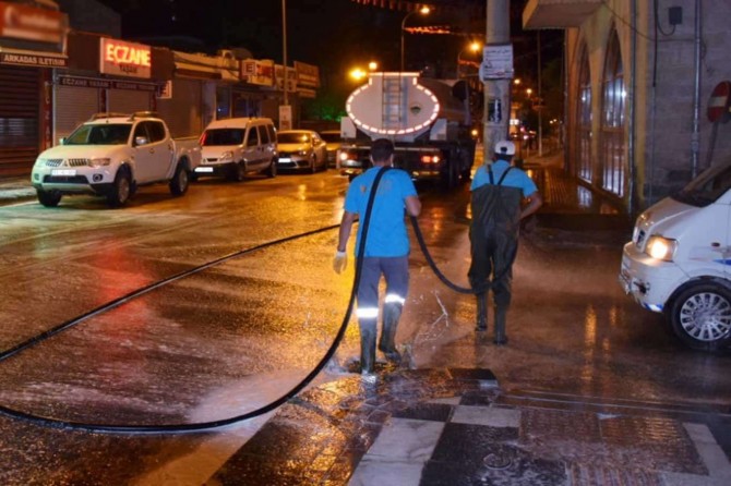 Viranşehir'de ilçenin ana caddeleri dezenfekte edildi