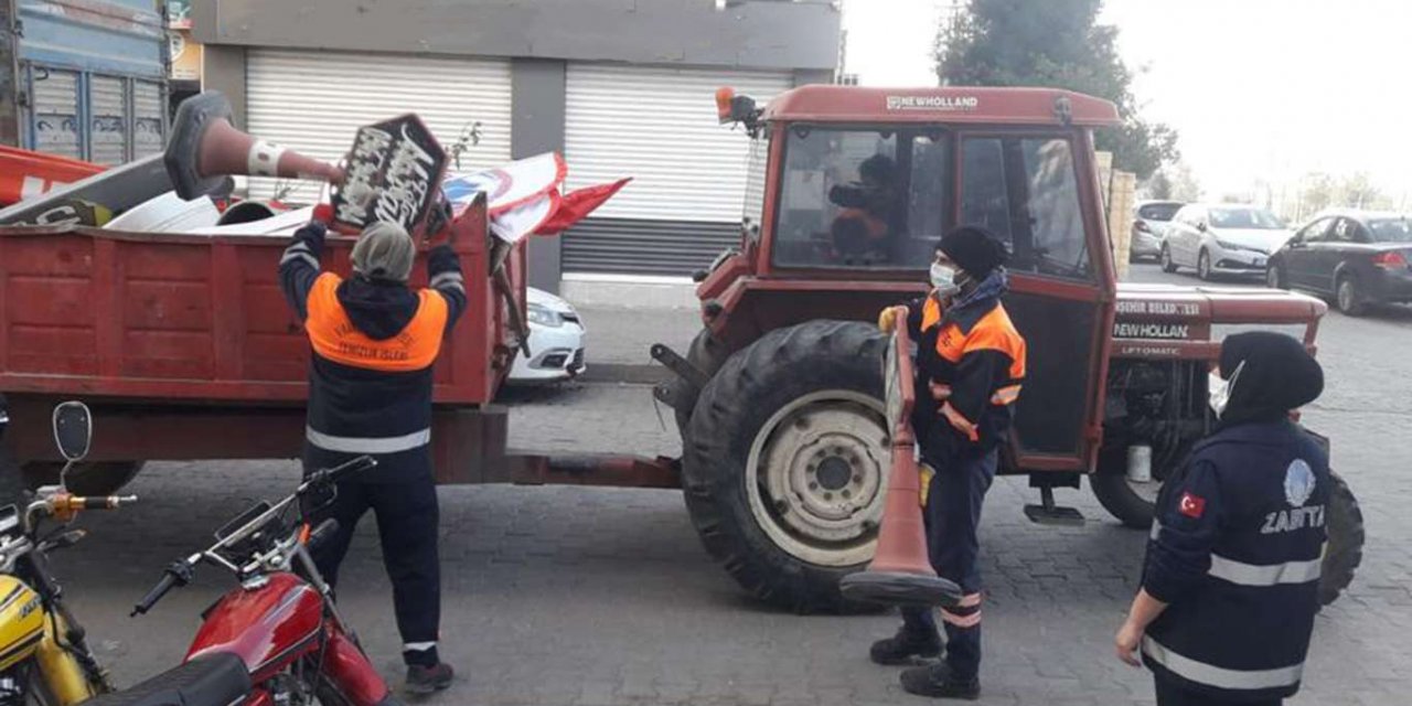 Viranşehir’de kaldırımları işgal eden tabelalar kaldırıldı