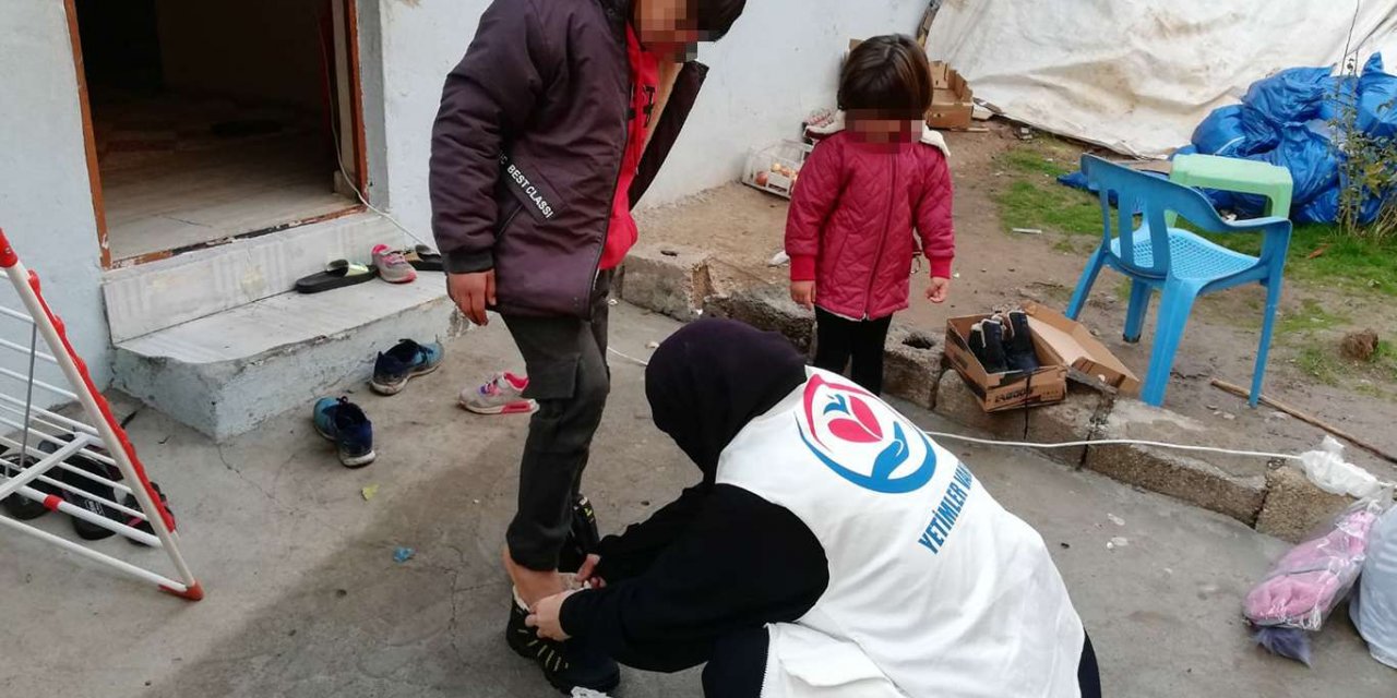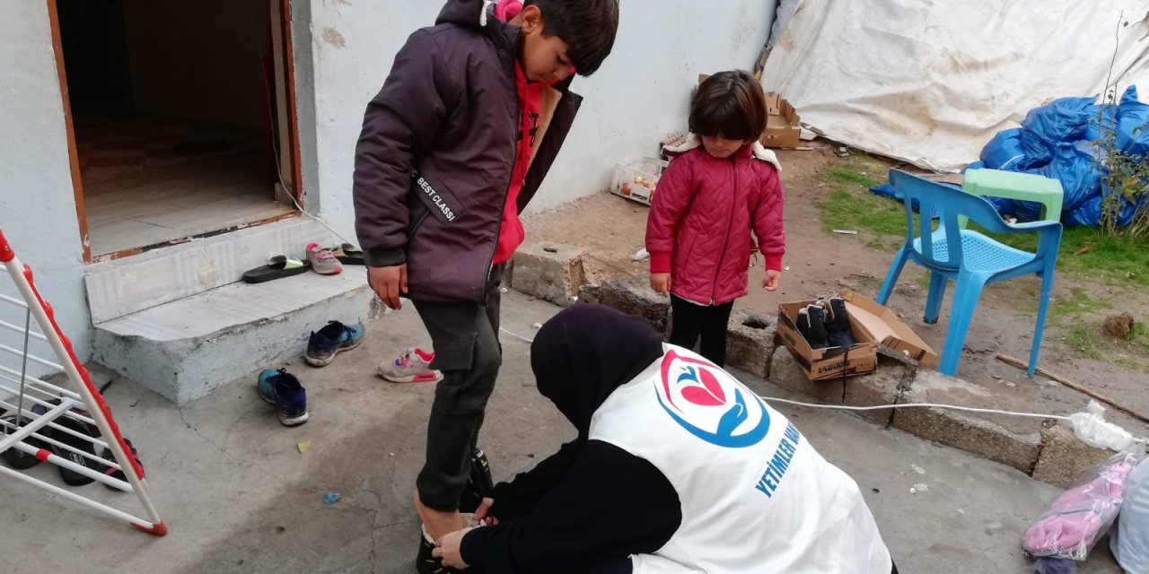 Yetimler Vakfı Aksaray'da onlarca yetim çocuğa bot ve mont yardımında bulundu
